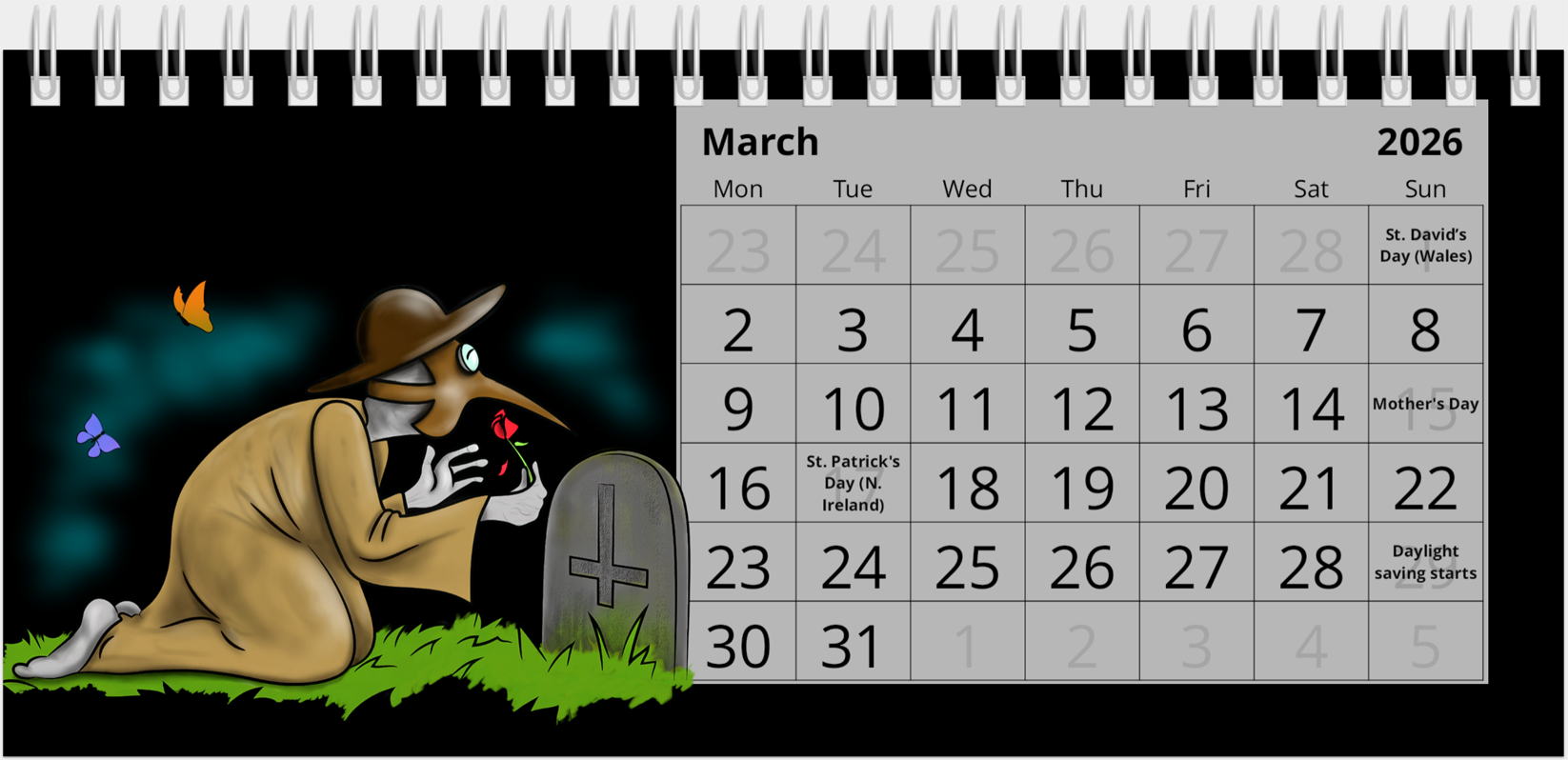 Breeze through the next 12 months with images that inspire and invigorate with various depictions of medieval plague doctors.
