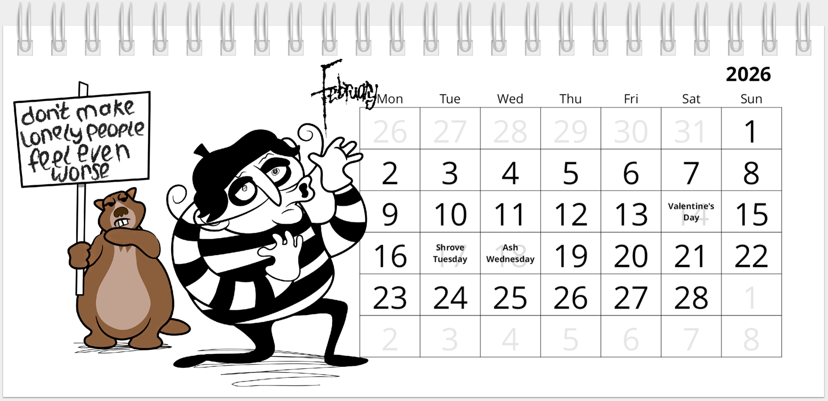 The hottest duo since Suck It & See; Marmot & Mime take us on a 12 month adventure of pure expression. Keep tabs on your Probation Officer appointments and when to take those gas and electricity meter readings.