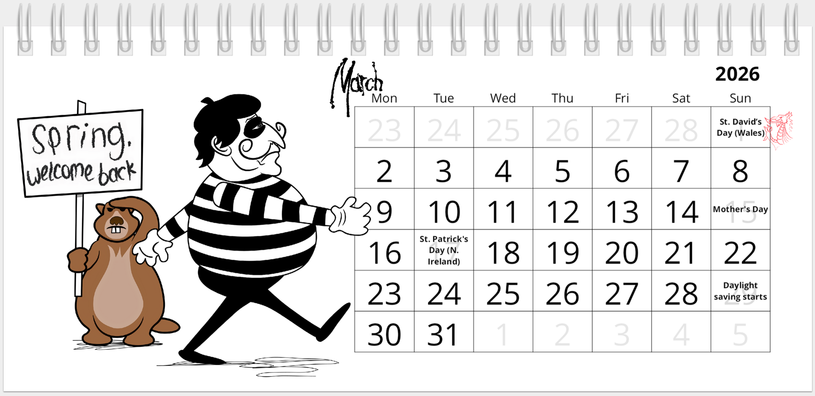 Marmot & Mime 2026 rectangle desk calendar